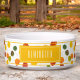 Empurre seu animal de estimação com este design de tigela com folhas coloridas de outono, assadas, sobre um fundo branco. Preencha o campo de modelo com o nome do seu animal de estimação ou faça dele uma ideia de presente de excelente para um novo proprietário de animais de estimação.
