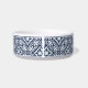 Inspirada pelos tradicionais azulejos azulejo da Espanha e de Portugal, esta tigela de cão ao estilo mediterrânico apresenta uma paleta de cor costeira de azul marinho, azul-celeste e branco com o nome do seu animal de estimação na frente.