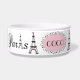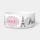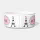 Chic Pink Black Paris Eiffel Tower Name Dog Pet Bowl