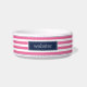 For the most stylish pets, this cute personalized bowl for dogs or cats features a vibrant pink and white stripe pattern with navy blue striped accents at the top and bottom. Personalize this cool preppy design with your pet's name in modern lettering.