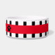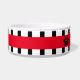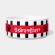 Pet Bowl Personalizado, Stripes Verticais Pretas e Brancas com Banner Vermelho, Adicione o nome do seu Pet entre as impressões da pata