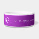The design has a sleek 'drink, drip, splash' theme, symbolizing the joy of pet ownership. The background features a cool, modern gradient that ranges from medium to bright purple. Whether they're eating their dog food or drinking water, this durable, high-quality dish makes a delightful pet accessory for any home. It's a thoughtful dog mom or dog dad gift for birthdays, holidays, or any special day.