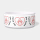Descubra nossa charmosa tigela de cachorro personalizada apresentando um design simples, mas sincero. Mostrando um contorno simétrico do coração vermelho que inclui uma impressão central de pata vermelha com linhas uniformes sobre um fundo branco limpo, esta tigela combina elegância e amor para seu amigo peludo. Perfeito para donos de animais de estimação que buscam um na moda e acessório significativo para seu cachorro.