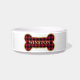 Uma tigela de cerâmica super fofa para cachorro, apresentando um desenho xadrez de osso de cachorro buffalo vermelho e preto, com moldura de folha dourada. Personalize com o nome do seu animal de estimação. Outros itens correspondentes estão disponíveis neste design.