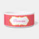 Estes rosa quente personalizado e bacia alaranjada do animal de estimação do teste padrão das listras para seu filhote de cachorro pampered têm uma área branca brilhante da etiqueta para você personalizar com nome do seu cão do animal de estimação. Se você precisa alguma ajuda, envie por correio electrónico niteowlstudio@gmail.com.