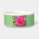 Uma Tigela Pet com uma Foto de Rosa Rosa Rosa com um Fundo Verde.