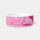 Uma bacia cor-de-rosa bonito, feminino do animal de estimação com uma imagem de flores retros cor-de-rosa brilhantes e umas cordas de miçanga de roda. Aperfeiçoe para um animal de estimação estragado da menina!