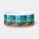 Foto colorida de uma cidade espanhola com um edifício tradicional, uma lua crescente e uma palmeira. Valencia, Alicante.