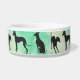 Três silhuetas pretas de Italian Greyhound em fundo azul/verde/branco.