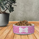 Tigela Xadrez Rosa Personalizado com Pegadas e Osso