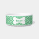 Mime seu animalzinho precioso com este comedouro personalizado de xadrez verde atemporal com pegadas de patas! Personalize-o com o nome do seu cão no osso.