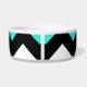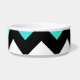 Um padrão de ziguezague tricolor preto, branco e turquesa.