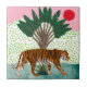 Tiger no Sunrise I por Melissa Wang. Um tigre passa por uma árvore tropical enquanto o sol se move através do céu. | 164402D