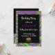 Um fundo preto acentuado por uma borda de riscas de tigre roxas e verdes. Personalize com todas as informações de aniversário conforme desejado.