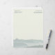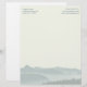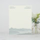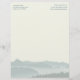 Papel de carta personalizado com cena da montanha de fundo para uso em um escritório rural. Personalize o texto em dois locais na parte superior da publicação off-white. O texto é impresso em letras finas e alinhado às bordas. Três linhas estão nas amostras e mais podem ser adicionadas. Ou apagar ambas as amostras.