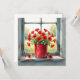 Placa floral. Uma ilustração maravilhosa de aquarela aérea de papoilas vermelhas em um café pintado de estanho vermelho pode sentar-se em uma janela ainda no dia do verão.