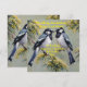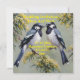 Representadas em ramos de árvore floridos em um design de tinta a óleo estão duas pegas australianas.