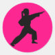 Uma silhueta preta fêmea de Artes Marciais em adesivos rosa quente.