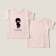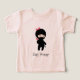 Ninja de desenho animado bonito está vestida de preto, mas para um arco cor-de-rosa sobre sua máscara de cabeça. A espada tradicional japonesa katana pode ser vista colada sobre o ombro, também colorido cor-de-rosa.