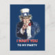 Tio Sam apontando para você. Cor de fundo personalizada. Texto personalizado de ambos os lados.