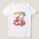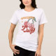 Típica retrorreflectora da sorte A moda feminina do topo da camiseta mostra o texto "Sentir-se sortudo" em uma tipografia retroramarela e vermelha, acentuada com um cordão. Perfeito como presente para ela no aniversário, Natal, Dia de as mães, melhores amigos, irmãs e muito mais. Projetado pelo Evco Studio www.zazzle.com/store/evcostudio