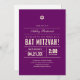 Convites à moda roxos majestosos de Mitzvah do bastão com a estrela de David. Personalize o fraseio para sua celebração.