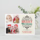 O divertimento e os cumprimentos festivos do Feliz Natal com 3 quadros ascendentes da foto no fundo liso do ecru do marfim com tipografia retro elegante denominam o texto na forma de um ornamento decorativo. Adicione suas fotos de família favoritas do feriado e personalize o texto. Maneira contemporânea de enviar cartões de natal felizes do inverno todos seus amigos e aos amados com um dom elegante do vintage. Porte postal, convites da festa natalícia, e cartões de harmonização disponíveis em cima do pedido. PCF12