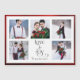 Clássica design de colagem personalizada e muito elegante com várias fotos, apresentando modelo frontal para cinco fotos quadradas, gráficos personalizados de texto de caligrafia "Love & Joy" e campo de texto editável com fundo vermelho rubi de estilo metálico castrado.