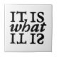 Tipografia branca e preta que diz "É o que é" em forma quadrada. Originalmente pintado à mão em papel.