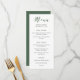 Este maravilhoso menu de casamento apresenta uma caligrafia verde profunda junto com o texto preto moderno, sobre um fundo branco elegante. Perfeito para um casamento formal e tradicional com um giro moderno!
