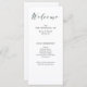 Este maravilhoso programa de casamento apresenta uma caligrafia verde profunda junto com o texto preto moderno, sobre um fundo branco elegante. Perfeito para um casamento formal e tradicional com um giro moderno!