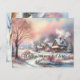Uma paisagem natalícia de inverno com árvores neves de inverno, árvores de Natal cheio de neve, e muita neve com uma casinha bem fofa e vintage no centro, em cores pastel pintura aquosa com nome personalizável
