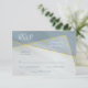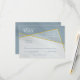 Esta simples e moderna placa RSVP de casamento em estilo geométrico apresenta um tema de cor azul empoeirado com elementos caligráficos, sotaques de quadro dourado assimétricos e aparência de textura de mármore - por katz_d_zynes
