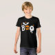 Halloween Boo Skull Bats Modern Typografia Tri-Blend Shirt apresenta o texto "Boo" na tipografia moderna laranja e branca, acentuada com morcegos, estrelas e crânio. Perfeito para festas de Halloween e comemorações. Criado pelo Evco Studio www.zazzle.com/store/evcostudio