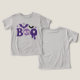 Halloween Boo Skull Bats Modern Typografia Tri-Blend Shirt apresenta o texto "Boo" na tipografia roxa moderna, acentuada por morcegos, estrelas e crânio. Perfeito para festas de Halloween e comemorações. Criado pelo Evco Studio www.zazzle.com/store/evcostudio