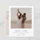 Este convite para casamento de fotos simples, mas elegante, mostra sua foto de noivado no topo da página. Seus nomes e detalhes aparecem em preto por baixo. Cartões invertendo o texto do convite de casamento com todos os detalhes do evento em uma tipografia com letra na moda e letra de script. Escolhemos duas fotos de modelo com um esquema de cores do deserto do boho de tons de areia erguida neutros, mas o esquema clássico de preto e branco da tipografia certamente combina com qualquer cor de casamento. Você pode personalizar esta design para apresentar as cores do seu casamento ou pode optar por alterar as fontes, pontuação ou posicionamento usados para vários elementos de texto desta design na frente e/ou no verso. As fotos podem ser substituídas por suas, se você quiser apenas mostrar uma foto, o inverso pode ser excluído para descobrir um fundo branco clássico. Para acessar essas opções avançadas de edição, basta clicar em "Personalizar" e "Editar usando a Ferramenta de Design". Como parte da seleção orçamentária no Zazzle, esta folha não é um tamanho de convite padrão ou qualidade de papel. Se quiser que este design num cartão de convite o encontre na nossa loja ou utilize o Zazzle Make Machine para o transferir para o produto da sua escolha. Se precisar de uma mão com algo ou se quiser trabalhar comigo por encomenda, sinta-se à vontade para me enviar uma mensagem através do botão abaixo! Certifique-se de entrar em contato comigo antes de fazer a compra, pois não posso editar um pedido existente. Procure na nossa loja outras opções de papel e mais designs de casamento!