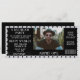 O convite ao estilo de Tíquete de Convite para Fotografias de solteiro ou Festas de Stag é perfeito para festas de solteiro ou de stag. O fundo de fotografia preto e branco moderno faz disto um design masculino para o noivo ser. Há várias linhas de texto em preto-e-branco com texto totalmente personalizável para tornar isso seu. Adicione uma foto do noivo a ser. O lado direito inclui um código de bar que você pode guardar como está ou substituí-lo pelo seu próprio, perfeito para digitalização como o tíquete de entrada paga e venda avançada de ingressos para entrada no stag ou na despedida de solteiro. O verso tem a cinza rústica e o fundo branco.