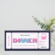 Tíquete de Voucher de Data de Janto Púrpura Rosa. Um design divertido e colorido com um cartão de embarque da velha escola, com um janto romântico cor-de-rosa e uma tipografia cor-de-rosa em fundo roxo profundo. Este vale-presente é o presente perfeito para uma data jante com seu namorada, bestie, esposa, mãe, avó, etc. Basta adicionar o nome do restaurante, a data, e quaisquer outros detalhes para o janto e vocês estão prontos.