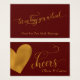 Este ingresso elegante e alegre pode se tornar qualquer cor que você escolher. Em uma letra festiva e elaborada, as palavras "vamos comprar uma bebida" aparecem na frente deste ingresso moderno. O belo texto foi embelezado com um falso efeito de folha de ouro. "Bom para uma bebida adulta" foi adicionado ao campo de texto editável em uma fonte serif complementar na parte inferior. Use quaisquer outras palavras que quiser, se quiser alterar a cópia. Do outro lado, um coração dourado se aproxima da borda. À sua direita, a bela camada gráfica de texto diz "torcida" e um modelo foi adicionado aos seus nomes. A cor de fundo editável é burgundy neste exemplo. Todas as camadas estão destravadas para que você possa redimensionar ou reposicionar qualquer parte desta placa, caso queira ajustar este design. Por favor, não hesite em contactar se tiver pedidos ou necessitar de assistência personalizada. // 56 // Concebida por Melody Watson para Paper Muserie.
