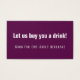 Trate seus convidados de recepção de casamento para um coquetel ou dois com a ajuda desses ingressos simples. Todo texto é renderizado em fontes simples e básicas que são totalmente editáveis: mude meu texto, cores e as fontes, se preferir. O cartão foi montado com este texto e frases: na frente está "Vamos comprar uma bebida!" e "Bom para uma bebida adulta". Na parte de trás está "animações" e um espaço reservado para seus nomes. Use apenas os campos modelo para personalizar as placas com seus detalhes pessoais e clique para personalizar mais, se você quiser alterar mais do que a cópia. Todos os tipos são brancos e o fundo é uma ameixa profunda. // Concebida por Melody Watson para Paper Muserie.