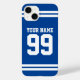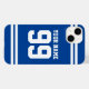 Caso Case-Mate iPhone 14 de uma camisa de futebol personalizada com faixas atléticas. Cobrir de smartphone personalizado com design de modelo esportivo. Adicione sua própria citação, nome ou letras monográficas. Também disponível para outros telefones, como o Samsung Galaxy. Incrível ideia de presente de Natal para amigos, família, marido, pai lendário, filho, irmão, avô, treinador esportivo, instrutor de malhação, treinador pessoal, pai etc. Adequado para homens e mulheres.