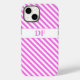 Esta "capas de iphone Monogrammed Pink/White Stripes" apresenta listras rosa e brancas e pode personalizá-la com as suas iniciais. Peça hoje!