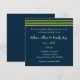 Uma banda de listras verdes estala neste convite do casamento dos azuis marinhos