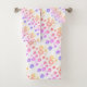 Bolhas que flutuam em três dimensões. Os vários tamanhos das bolhas parecem flutuar na superfície. As cores da bolha são roxas, cor-de-rosa, alaranjadas e amarelas, no fundo branco
