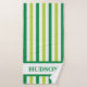 Esta toalha listrada verde pode ser personalizada com um nome, fazer-a como um presente atencioso e único. Essas toalhas não só são super práticas, como a personalização acrescenta um toque pessoal que as torna especiais a mais. Com uma variedade de cores disponíveis, elas são perfeitas para famílias.
