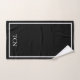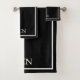 Um conjunto de toalhas de banho clássicas preto e branco com monograma tradicional. O conjunto inclui pano de lavar, toalha de mão e toalha de banho. Também pode ser vendido separadamente.