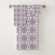 Toalha com padrão geométrico roxo e preto