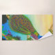 Adicione algumas cor e arte a seu banheiro com este design indiano azul exótico do pavão por Carolyn McFann do estúdio de ronrom de dois gatos, impresso belamente em uma toalha de banho luxuoso, absorvente.