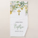 Um belo design do batismo que mostra flores rosa e cruz de amarelas e brancas de aquarela. Um design religioso ideal para o Natal Batismo de um bebê ou de uma menina. Os artigos de papelaria e decoração correspondentes podem ser vistos nesta coleção de designs.
