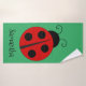Ladybug Design Beach Towel com cores de fundo e texto personalizáveis.